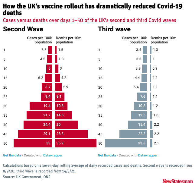 COVID will still kill people, on the scale of a country it will still tragically choke some even fully vaccinated young people to death. There is still a risk we need to be aware of and we still need to be vigilant of the virus. However, the data speaks for itself – vaccines have taken us from tackling a virus that was about 10-20x more deadly than flu to a one which is appearing less deadly than flu.